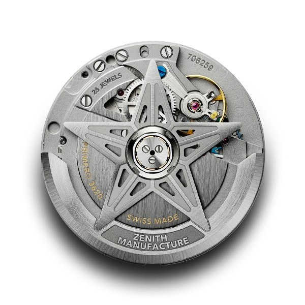 錶內搭載新一代El Primero 3620自動上鍊機芯,這枚機芯振頻高達5Hz,動力儲存亦達約60小時,配備可精準設置時間的停秒裝置。
