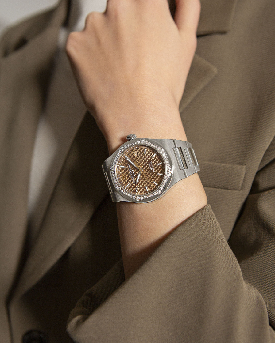 GIRARD-PERREGAUX早在2022年便推出過一款Laureato Copper腕錶,採以放眼鐘錶界也相當罕見的金銅配色。今年,品牌乘勝追擊,推出全新Laureato Copper Diamond Bezel,同樣採用金銅色錶盤,唯一不同在於新款為錶圈鑲鑽款,把光影效果迷人的錶盤襯托得更靈動璀璨。