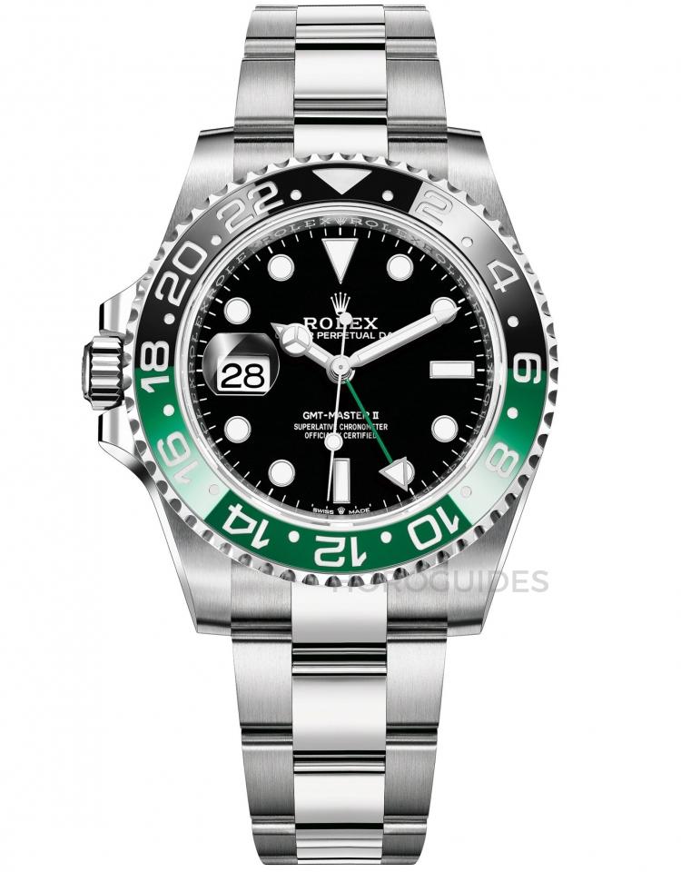 2022 年勞力士推出了這款讓所有愛好者驚呼連連的左冠GMT-Master II,全新型號為126720VTNR,這款是繼紅黑、紅藍、藍黑以及棕黑後,勞力士推出的GMT-Master II 第五種配色:綠黑圈,這款也是雙色圈的第四款Cerachrom 材質陶質字圈,搭配上左錶冠及綠色針,日期窗也順勢調整至9 點鐘位置,並且一次推出Oyster 蠔式帶與Jubilee五珠帶兩種款式。有鑒於ROLEX 很少推出左錶冠的錶款,加上曾有一款1959年左錶冠GMT-Master II 6542 現身2018年Phillips 富藝斯拍賣會,當時以約港幣2百萬亮眼的成績成交。因此今年再度出現的左錶冠GMT-Master II 的,肯定是藏家們必收之選,一錶難求。