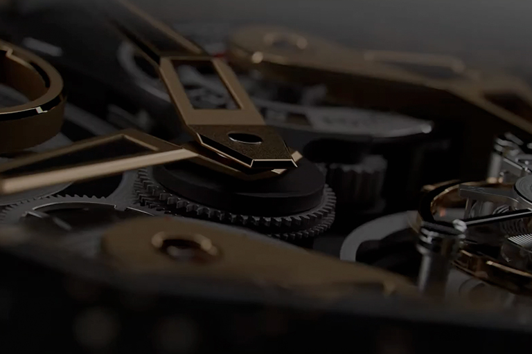請來大師Vincent Calabrese打造出匠心獨具的『金橋』機芯,以美國舊金山地標金門大橋為靈感,排出一線的輪系,置於透明藍寶石水晶錶殼之中,視覺與技術強力震撼了錶壇。
